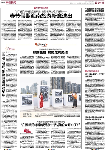 “一听口音就知道是来旅游的。”周末午后,利索地收拾出空桌并把客人请进店,龙舌坡一家牛肉店的服务员告诉海南日报全媒体记者,临近春节,店里已经接待了不少外地口音的顾客,翻桌率明显高了不少。