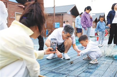 近日,家长带着孩子在陵水疍家渔排上游玩。