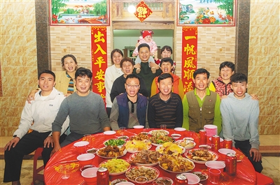而卢章耀的爱人则用筷子将自家养的白斩鸡、白斩鹅、东风螺等美食不停地夹给孩子们,希望他们的身体一年比一年健壮。