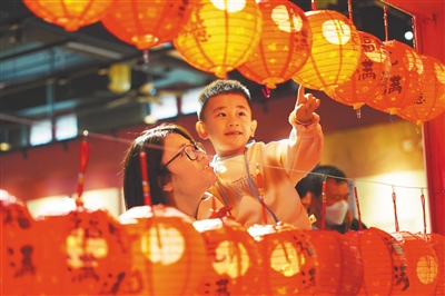 ① 1月29日,儋州市民带着孩子到儋阳楼猜灯谜。