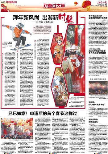像杨吕勇这样规划春节假期的人不在少数。打卡非遗体验活动,过个地道的中国年,“年味游”正成为2025春节国内游游客的不二之选。