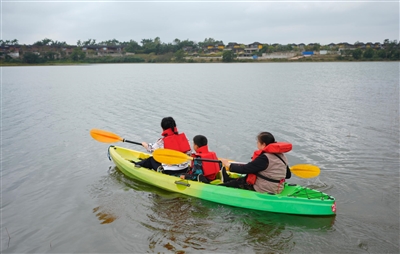 1月30日,游客在定安南丽湖欢乐湾体验水上运动的乐趣。海南日报全媒体记者 张茂 摄