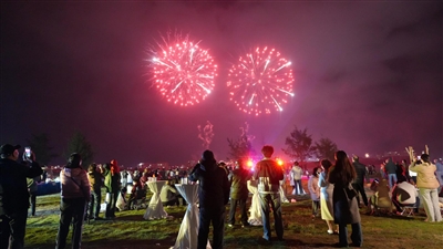 春节期间,博鳌东屿岛上空绽放绚烂烟花。