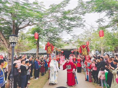 2月1日,定安老县衙举办琼剧实景演出,吸引游客驻足观看。海南日报全媒体记者 陈子仪 通讯员 黄岗 摄
