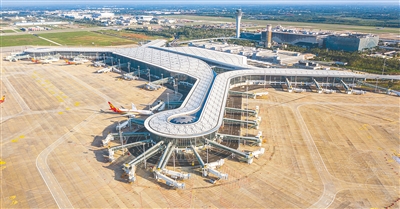俯瞰海口美兰国际机场T2航站楼。刘洋 摄