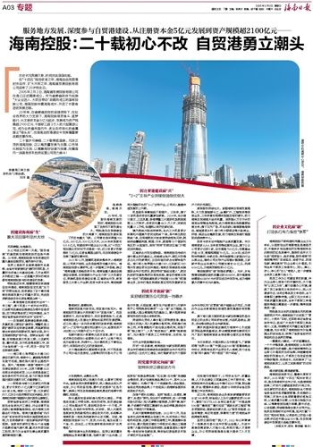 特别是近年来,随着海南自贸港建设加快推进,海南控股坚定扛起“主力军”的责任担当,投资建设了多个事关海南自贸港发展大计的重大项目,完成投资额连续多年位居省属国企第一。