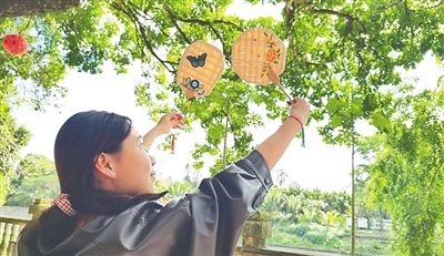 竹编艺术历史悠久,手工匠人将竹子经选材、破竹、编织等工序,让日常竹器演变为兼具实用与艺术价值的工艺品。现场,身着“小屯妹”志愿者马甲的竹编老师一边在手起刀落间将一根竹子削为多条宽窄均匀、薄厚一致的竹篾,一边进行讲解,儿童学员们瞪着大眼睛听得津津有味,生怕错过任何一个“秘籍”。到了实操环节,在老师指导下,小学员们也创作出一把把竹编扇,当成自己的春节礼物。