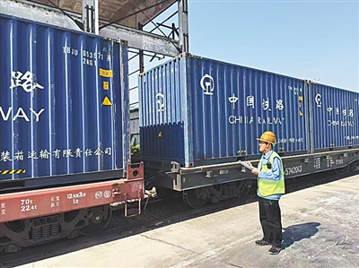“箱门固定稳妥,角件严丝合缝,箱体完好无损,箱顶光洁无物。”货运员杨永靖口中默念着检查步骤,在货场里对即将出发的货运列车进行检验。