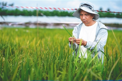 海南农垦高值优质经济作物新品种成果中试基地里,水稻育种专家选育新品种。