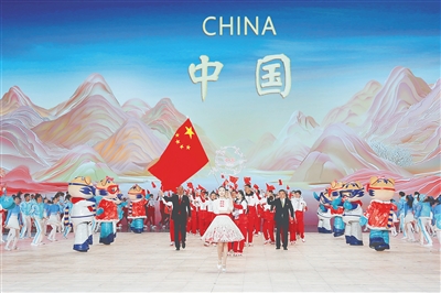 ③ 2月7日,中国体育代表团在开幕式上入场。新华社记者 黄伟 摄