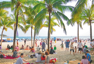 二月七日,三亚市大东海旅游区,众多中外游客享受北纬十八度的温暖。 海南日报全媒体记者 王程龙 摄