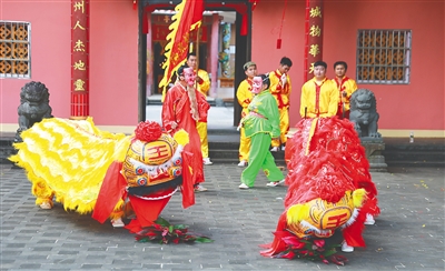 1月30日正月初二,海口永兴镇的麒麟舞队早早整装。舞队中,“元帅”身披彩绣麒麟袍,手持长鞭开道;“家院”“土地爷”“天兵”们翻滚腾跃,演绎着“麒麟送子”的古老寓言。队伍行至村民家门,主人家焚香鸣炮相迎,接过麒麟口中衔着的“如意”,祈求新年添丁旺财。