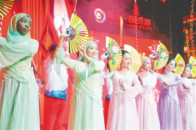 1月22日晚,来华留学生在海口表演琼剧。海南日报全媒体记者 张茂 摄