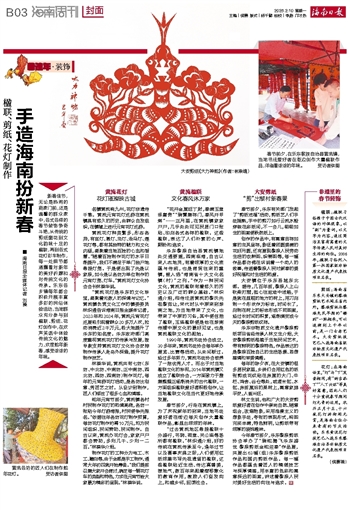 春节前夕,乐东有关部门发起了“剪纸送福”活动,剪纸艺人们手法娴熟,手中的剪刀如行云流水般穿梭在彩纸间,不一会儿,栩栩如生的图案便跃然纸上。