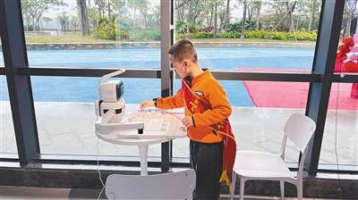 小学生在儋州市科技馆内与机器人下棋。海南日报全媒体记者 吴心怡 摄