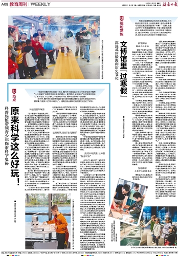 ■ 海南日报全媒体记者 吴心怡“欢迎来到儋州市科技馆!”近日,儋州市长坡实验小学二年级学生郑才翰等“小小讲解员”热情欢迎前来参观的群众。春节期间,该馆举办“科技馆里找年味儿”系列活动,为公众献上一场具有知识性、趣味性的新春“科技盛宴”。