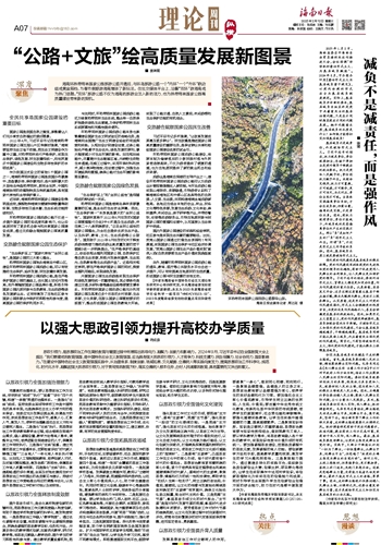 ■ 娄瑞雪海南环热带雨林国家公园旅游公路开通后,与环岛旅游公路一个“内环”一个“外环”联动组成黄金搭档,为春节假期游海南增添了新玩法。在社交媒体平台上,沿着“双环”游海南成为热门话题。“双环”旅游公路不仅为海南的旅游业注入新的活力,也为热带雨林国家公园高质量建设带来新的契机。