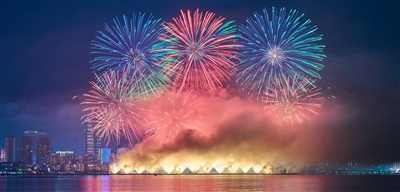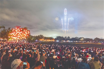 除了花灯秀,还有闪耀夜空的烟花秀、无人机表演秀。