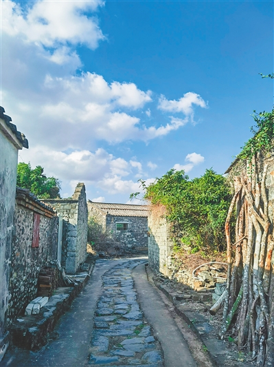 最近一次,我独自走进了古巷。古朴的石板小路两边是高高矮矮的石墙,石墙里面是石砌的民房。在这样的小巷中,一时迷了方向也不用担心,即便前方是一堵石墙,看似无路,大胆走过去,一定有转弯处,轻巧地一转又走入一条石板古巷,这样走下去,总会走到大路上的。