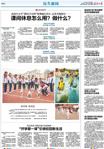 在儋州市那大第一小学开学典礼上,该校法治副校长通过典型案例,围绕防范网络诈骗的主题,为学生们送上生动的法治教育课。该校心理教师则为学生们提供心理辅导,注入“心”动力,为新学期开启“心”篇章。