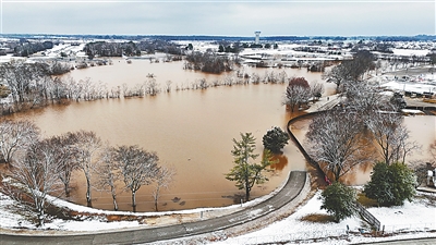 在刚刚过去的周末,美国东南部肯塔基州大雨滂沱引发河水暴涨,造成8人丧生。其他多地也遭遇恶劣天气。图为2月16日在美国肯塔基州鲍灵格林拍摄的泛滥的巴伦河。新华社/美联