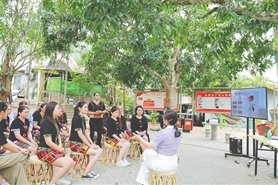“黎花知音”课堂走进昌江王下乡,学员在大树下听讲。