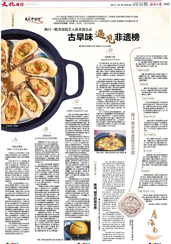 ■ 海南日报全媒体记者 张期望 实习生 陈卓瑶今年公布的海口非物质文化遗产名录中,六项美食制作技艺赫然在列。这些美食,或曾风靡街头巷尾,或令游客流连忘返,或承载着千年传统文化,如今已成为这座城市文化传承的瑰宝。
