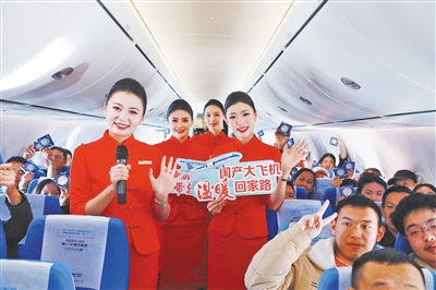 空乘人员开展C919国产大飞机投入春运主题活动。新华社发