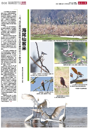 ■ 海南日报全媒体记者 刘阳秀二月的清晨,昌江海尾国家湿地公园(以下简称海尾湿地公园)洋溢着早春的活力。大白鹭曲颈啄食,绿翅鸭划开粼粼波光,成群的金鸻沐浴着阳光划过天际……早春时节,海尾湿地公园的“仙客”们似乎已感知到地气回暖,纷纷“早起”舒展筋骨,万物萌动的滩涂如巨幅水墨画徐徐铺展。