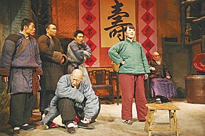 1957年,话剧导演梅阡率先将《骆驼祥子》搬上“北京人艺”的话剧舞台。导演从原作中提炼出三条主要的线索,即祥子的个人奋斗、虎妞的追求幸福生活和小顺子反抗的贯穿线,将作家的思想转化为舞台的动作语言,找出人物的思想和行为逻辑,赋予每一个登场人物以鲜明的贯穿动作。话剧延续了修订本的思路,改变了主人公祥子走向堕落的结局,将祥子引向革命,给了祥子一个光明的出路。同时为凸显祥子与刘四爷(工人与资本家)之间的阶级矛盾,将刘四爷的形象充分负面化。总之,为打造一部革命版的《骆驼祥子》,不少次要人物形象趋向扁平,失去了本有的光彩。但是,话剧版在将虎妞形象正面化处理中,突出虎妞身上体现出的妇女解放精神,塑造出一个具有叛逆性格的女性,成为了一个极大的亮点。