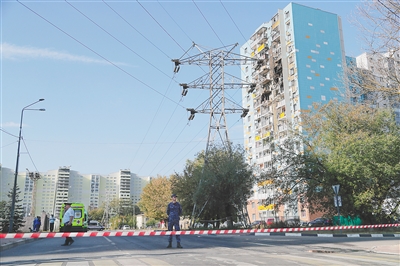 在俄罗斯莫斯科州拉缅斯科耶拍摄的在无人机袭击中受损的建筑。新华社发