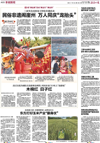 ■ 海南日报全媒体记者 王晓曈3月1日,在东方市大田镇的玉米地里,种植户陆安辉举起双色玉米笑得爽朗:“这可是会爆汁的‘双色007’,可以当水果生吃,北上广的超市抢着订呢!”