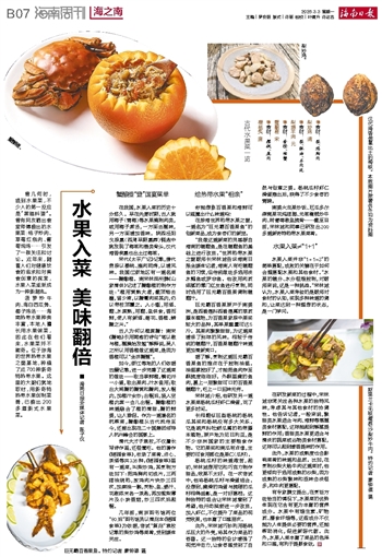 ■ 海南日报全媒体记者 陈子仪曾几何时,提到水果菜,不少人的第一反应是“黑暗料理”。曾有网友晒出食堂师傅推出的水果菜:桔子炒肉、草莓红烧肉、葡萄炖鸡……引发了一拨关注和讨论。近年来,随着人们对健康饮食的追求和对美食创意的探索,水果入菜逐渐成为一种新潮流。