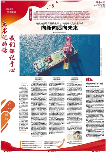要着力构建具有海南特色和优势的现代化产业体系。促进科技创新和产业创新深度融合,推动旅游业、现代服务业、高新技术产业、热带特色高效农业等主导产业补链延链、优化升级。主动对接国家战略科技力量,加强国际科技合作,构建更加开放的引才机制,打造多层级科技创新体系,加大核心技术攻关力度,加强科技成果转化,因地制宜发展新质生产力。坚持生态优先、绿色发展,加强突出环境问题整治,守护好青山绿水、碧海蓝天。推动文化、体育、旅游、康养等产业融合发展,促进旅游业开放合作。培育壮大新型消费,推动消费转型升级。坚持陆海统筹、山海联动、资源融通,抓好海洋开发,向海洋要生产力、求新增长点,建设海洋强省。