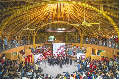 去年十月,巴黎宝丽声童声合唱团在五指山市水满乡毛纳村演唱。