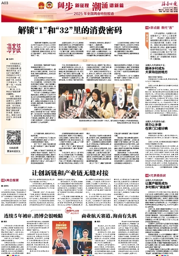 当前,海南正加快建设国际旅游消费中心,自然不会错过如此重要的信息。会议现场,我省代表委员纷纷聚焦“提振消费”,谈思路、提建议。那么,海南又该如何作为,抓住消费机遇?