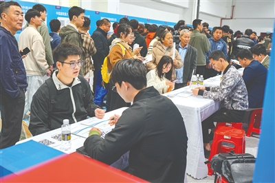 今年初,在海口举行的春节返乡人才对接会吸引了众多求职者。海南日报全媒体记者 张茂 摄