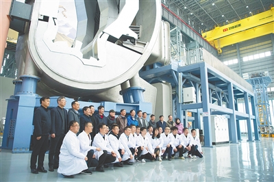 三月九日,科研人员及专家在八分之一真空室及总体安装系统主体平台边留影。