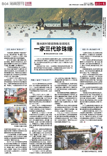 “二十世纪八十年代末,新村港几乎家家户户都有人从事与珍珠有关的工作,也有外地人来做生意。”黎照月介绍,鼎盛时期,新村港大大小小的珍珠养殖场达数十家。