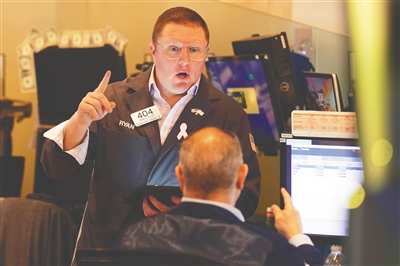 三月十一日,交易员在纽约证券交易所交易大厅工作。新华社发
