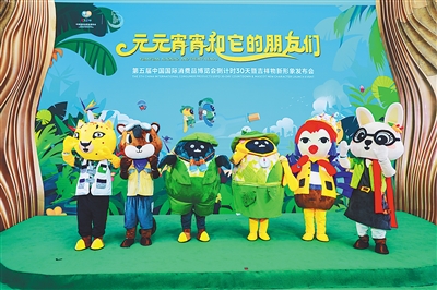 在活动现场,消博会吉祥物“元元”“宵宵”和其朋友们均身着雨林服饰,组成热带雨林保育研究队集体亮相。除了以海南长臂猿为原型的“元元”“宵宵”之外,以海南本土珍稀雨林动物为原型的四名热带雨林保育研究队成员首次亮相,包括原型是海南云豹的“豹博士”、原型是海南兔的“兔米”、原型是海南鼯鼠的“闪电”、原型是海南孔雀雉的“吱吱”。