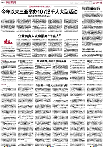 此外,三亚还将谋划开通海棠湾到景区、景区到景区、海棠湾免税城到凤凰机场等直升机航线,推动更多“低空+交通”场景落地;鼓励船企打破现有产品模式,创新和丰富旅游产品,将运营区域拓展至大东海海域,与海上运动项目深度合作,开发精品“下午茶”“亲子游”项目,增加水路客运服务吸引力。