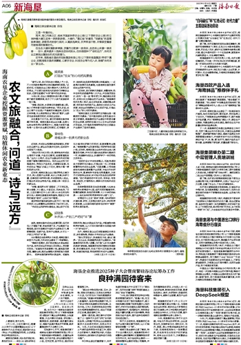 近年来,海南农垦企业以做好特色文章为支点,深入挖掘产业资源,将乡土风情、科研力量、农事活动与研学科普、休闲度假深入结合,打造出休闲农业特色产品,培植从单一到多元的新业态。