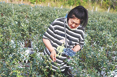 “我们从朋友圈里看到这里可以采摘蓝莓,就相约一起来了,这里的蓝莓又大又甜。”游客黄春泽说。