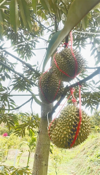 “你看这棵树上结了三颗榴莲果实,平均每颗重约7斤,过几天就可以食用了。”杜百忠走到一棵错峰挂果测试的国产榴莲树旁向记者介绍道,今年他们计划划定一个更大的测试面积,将达到50亩到100亩,开启国产榴莲错峰挂果规模化测试阶段,“后续随着技术的不断成熟,我们还会继续扩大面积,打造一个国产榴莲错峰种植基地,有望实现榴莲错峰量产上市,填补市场空白。”