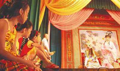 海口东湖里社区的居民观看琼剧。资料图