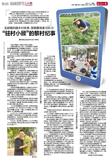 2024年,面对村民怀疑的目光,他决定用年轻人的方式打开局面。从田间地头学农技,到为村民解决实际问题,筹集善款帮助困难学子,顾光亚用一部手机,一腔热血,记录下驻村的点点滴滴,他的镜头逐渐成为外界了解海南驻村干部、海南乡村的窗口。正如他一直坚信的:“这里没有滤镜,只有最真实的泥土芬芳。”