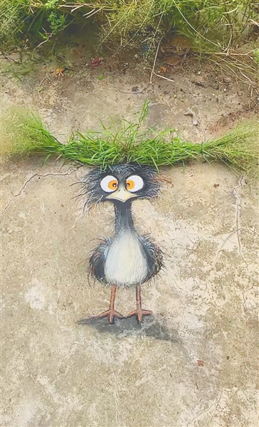 分叉的杂草在黄天蓝的巧手下变成鸵鸟俏皮可爱的“双马尾”。本版图片均由黄天蓝提供