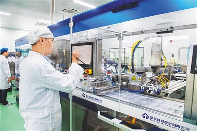近日,在海口国家高新区药谷产业园的海南森祺制药有限公司,工作人员开展数字化糖浆剂生产线联线测试。该项目投资3300万元,可实现从配液到装箱码垛的全自动无间断生产,生产效率提升一倍,设计年产值10亿元。海南日报全媒体记者 袁琛 摄