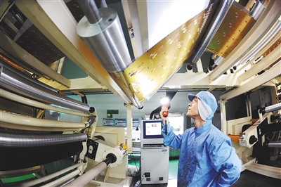 在江苏省连云港市一家医药包装生产企业,工人在车间生产线上忙碌。新华社发